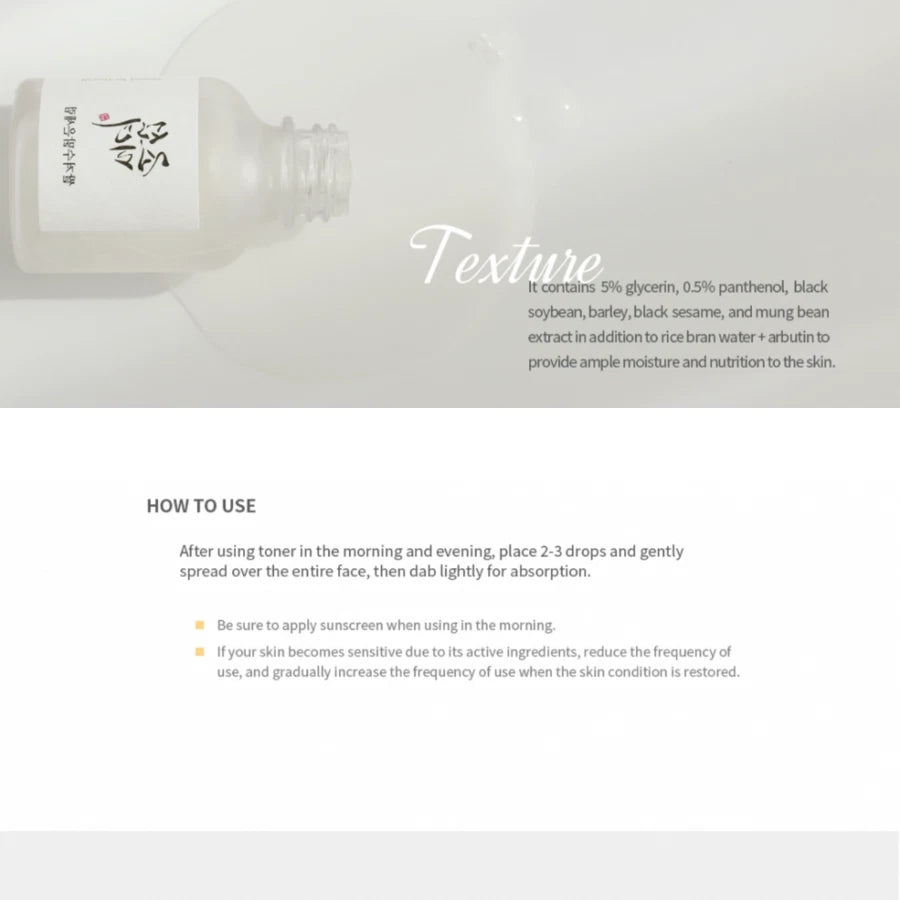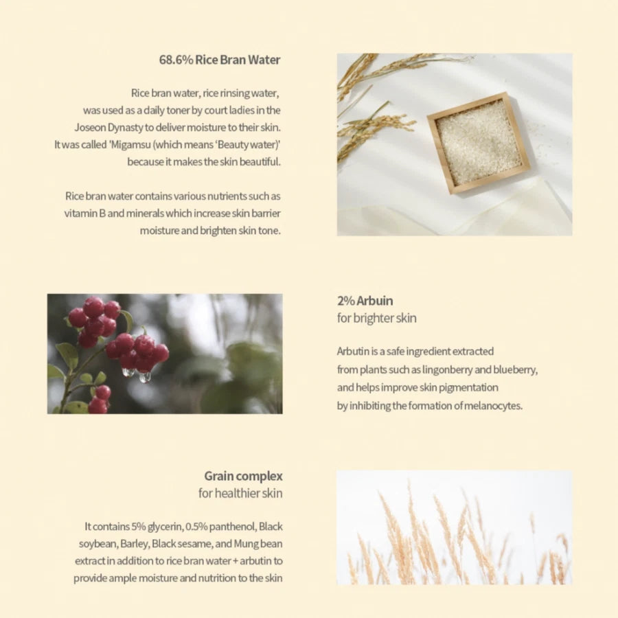This lightweight yet powerful serum is crafted to visibly brighten dull, uneven skin with the calming blend of 68% rice bran water and 2% arbutin — a gentle brightening agent known to fade dark spots and improve skin tone. Rooted in traditional Korean skincare wisdom, it hydrates, soothes, and leaves your complexion radiant and balanced.
